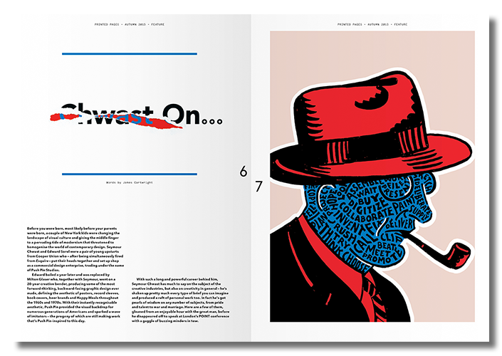 Šo lekciju īpaši gaidīju, jo mani interesē žurnāla tapšanas process no idejas līdz gatavam rezultātam, kas spējīgs sevi atpelnīt. Un manā grāmatu plauktā, viens aiz otra sarindoti, stāv visi «Printed Pages» numuri. Žurnāls «Printed Pages» ir viens no dizaina bloga «It’s Nice That» blakusprojektiem, un Džeimss Kārtraits ir tā redaktors. Viņš stāsta par to, kā žurnāls audzis, attīstījies un iekarojis savu vietu tirgū. Sākotnēji žurnālu sauca tāpat kā blogu — «It’s Nice That». Lai gan tā saturs bija īpaši veidots, cilvēki neiedziļinoties pieņēma, ka blogs un žurnāls ir viens un tas pats, un nevēlējās maksāt par to, ko var dabūt par velti internetā. Pēc neilgas pauzes žurnāla dizains tika pārveidots, tēmējot uz «premium fine art market», bet žurnālu joprojām nepirka tā, kā gribētos, jo līdz ar ražošanas izmaksām vajadzēja pacelt arī žurnāla cenu. Tika nolemts žurnāla veidošanu uz gadu pārtraukt, lai kārtīgi pārdomātu stratēģiju un beidzot nonāktu pie peļņas. Tika mainīts nosaukums, lai žurnālu nejauktu ar blogu, mainīts formāts un vienkāršots dizains, kas ļāva pazemināt cenu un padarīt to pieejamu plašākai auditorijai.