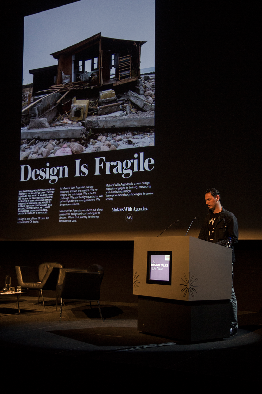 «DesignMarch» festivālu atklāj dizaina sarunu cikls «DesignTalks», kas šogad zem tēmas «Play Away» apvieno ievērojamu vietējo un ārzemju dizaineru skatījumu uz spēlēšanos kā eksperimentālu pieeju, spekulāciju, vispāratzītu pieņēmumu apgāšanu un priekšnosacījumu radošumam un inovācijai. Dizaina sarunas norit Islandes Simfoniskā orķestra un operas mājvietā — koncertzālē «Harpa», kuras arhitektūra ir dāņu «Henning Larsen Architects» un islandiešu «Batteriid» arhitektūras biroju kopdarbs, bet fasādi, kuras daudzstūru stikla ietvari un lauztās formas atgādina peldošus ledus gabalus, veidojis slavenais islandiešu–dāņu mākslinieks Olafūrs Eliasons (Ólafur Eliasson).