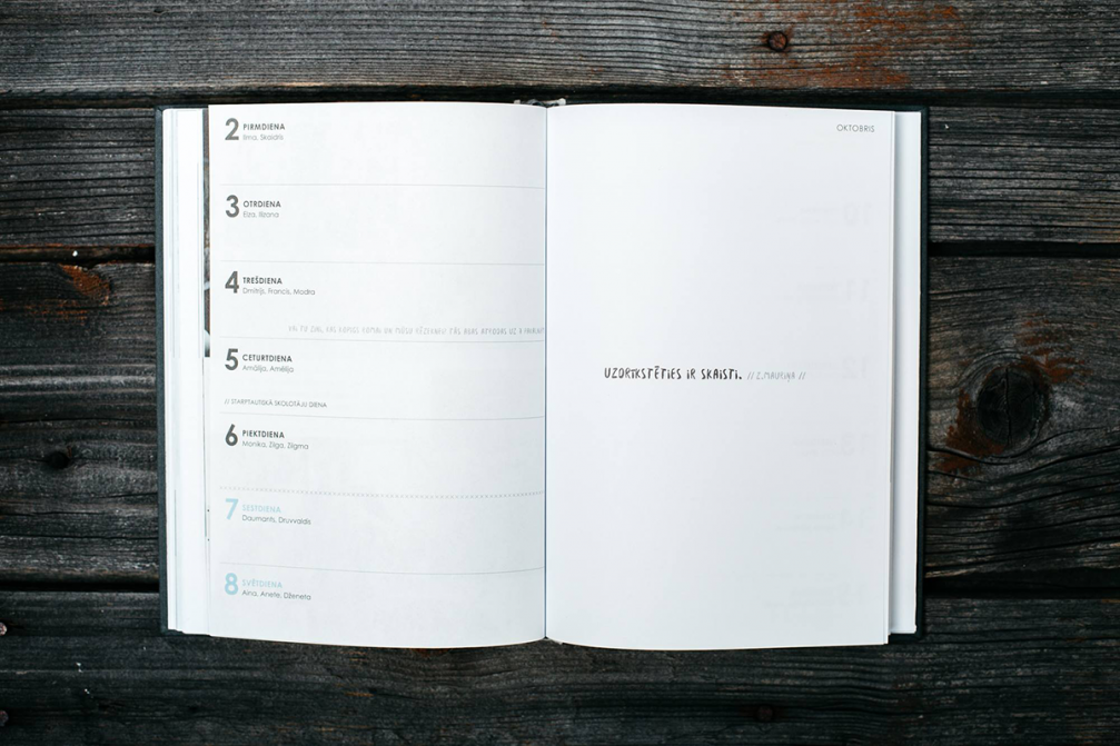Zīmola «Mjau» grafikas dizainere Madara Krieviņa izveidojusi vienkāršu un atturīgu nedēļas plānotāju tiem, kam padarīta darba sajūta rodas tikai tad, kad visi uzdevumi no darāmo lietu saraksta izsvītroti. Plānotājs būs derīgs ne tikai 2017., bet arī jebkuram citam gadam — datumi tajā jāieraksta pašam. Pēc tam, kad visi nedēļas darbi padarīti, lapas var noplēst, izmest un aizmirst. Noplēšamais galda plānotājs nopērkams veikalos «Paviljons», «Manilla», «M50», «Miesai» un «Mjau» interneta veikalā.