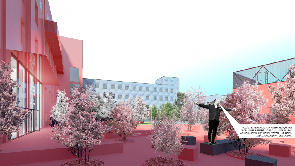 «NRJA» priekšlikuma galvenās iezīmes ir skaidrs funkcionālais dalījums plānos, apjomos un pagalma zonās, izmantojot krāsu kodējumu, kā arī pārstrukturēts projektēšanas programmā paredzētais telpu grupu sadalījums, vienā blokā apvienojot Kino un foto muzeju, Nacionālo filmu skolu un kinoteātri. Nelielais kinoteātris, kas būs izmantojams gan mācību procesā un muzeja vajadzībām, gan būs pieejams plašākai publikai, ir viens no diviem paredzētajiem projekta nozīmīgajiem enkurobjektiem. Otrs ir bibliotēka ar publiski pieejamu grāmatnīcu tieši pie ieejas teritorijā, kas nodod skaidru vēstījumu par to, ka tālāk pagalmā atrodas mācību iestādes, kurām bibliotēka ir gan simboliski, gan praktiski svarīgs objekts. «Šādā veidā, paredzot publiski pieejamus un izmantojamus objektus teritorijā — muzejs, bibliotēka ar grāmatnīcu un jumta terasi ar trenažieriem, kinoteātris ar kafejnīcu un sēžamkāpnēm, pagalma dārzs — Tabakas fabrikas iekšpagalms no noslēgtas akadēmiskas vides varētu pārtapt par dzīvīgu, publiski izmantojamu pilsētas ārtelpu,» komentē Uldis Lukševics.