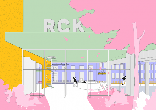 Rīgas Celtniecības koledžas nākotnes vīzija — skola kā būvlaukums. Projekts, kas tapis arhitektu biroja «Sampling», sadarbībā ar Beļģijas arhitektu biroju «Ouest». Vairāk par projektu — šeit.