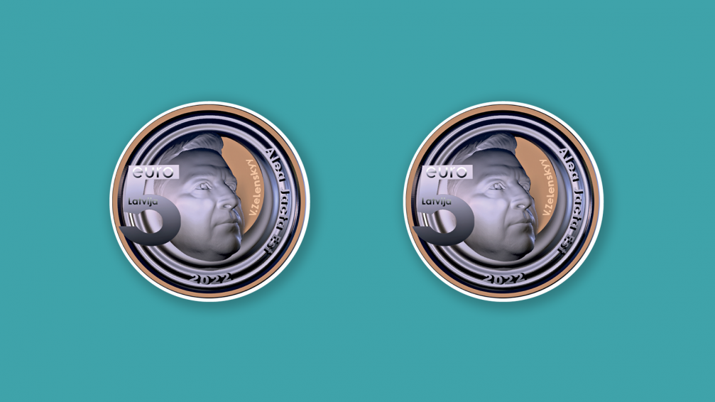 Monētu dizaina padomē darbojos jau vairāk par desmit gadiem, tāpēc laika gaitā gūtā pieredze man ļauj liecināt — Ukrainai veltītā monēta iezīmīga arī tapšanas procesa izaicinājumu kontekstā. Ikvienas monētas veidošanai tiek organizēts konkurss uzaicinātajiem māksliniekiem. Parasti konkursi ir slēgti un uzrunāti tiek četri vai pieci mākslinieki, kuru radošo interešu loks atbilst iecerētās monētas tēmai. Ikreiz rēķināmies, lai dalībnieku sarakstā būtu kāds, kurš vēl nav piedalījies dizaina izstrādē. Papildus ik pa diviem gadiem banka izsludina atklāto konkursu, kur darbus var iesniegt ikviens. Tā gadu gaitā vairākiem desmitiem autoru ir bijusi iespēja apjaust, ka izstrādāt zīmējumu izmēros tik niecīgajam laukumiņam, kāds ir monētas aplītis vai kvadrātiņš, ir darbietilpīgumā ļoti prasīgs uzdevums, kur jāņem vērā pat nepilnos milimetros mērāmu zīmējuma vai reljefa proporciju saspēli, tomēr vienlaikus cēlmetāla monētai piemīt nestspēja monumentāla izvērsuma vēstījumiem. Rezultātā tā ir kā laika zīmes kapsula, kas kalta tūkstošos skaitāmās vienībās. Un savu vienu vienīgo monētu varam paturēt saujā, krāt, dāvināt, glabāt paaudzēm vai arī pārdot. Nauda ir nauda!