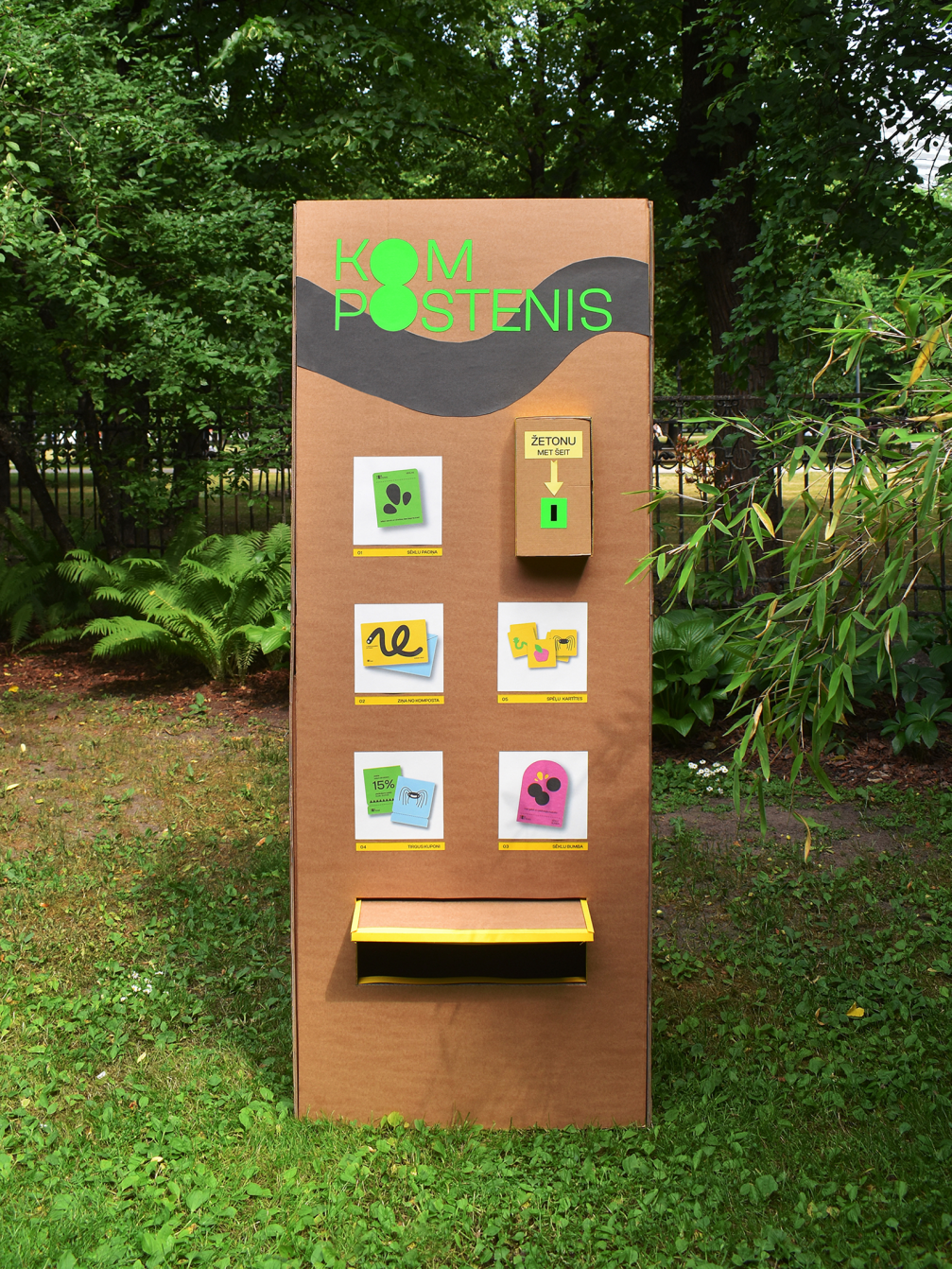 Lai veicinātu bioloģisko atkritumu šķirošanu pilsētā, viena no komandām piedāvāja Vidzemes tirgū izveidot neparastu pakalpojumu — atlīdzības sistēmu «Kompostenis». Koncepcijas pamatā ir ideja, ka cilvēki, kas atnesuši un izmetuši savu kompostu, iegūst žetonus, ko rotaļīgā atlīdzības automātā var apmainīt pret nelielām un videi draudzīgām dāvanām vai neparastām vēstulītēm no komposta iemītniekiem. Šis projekts vērš nozīmību uz komposta vērtību, it īpaši pilsētvidē un tirgus teritorijā, kur pārtikas atkritumu apritīgums nav atrisināts.