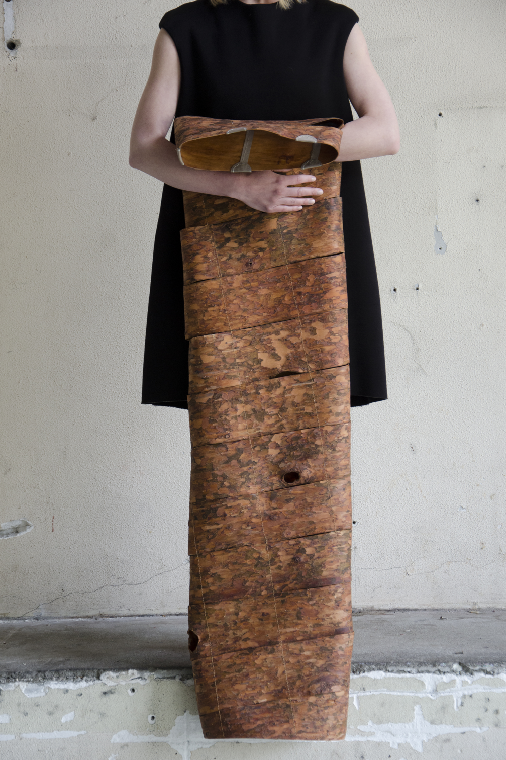 Savu pirmo materiālu Sarmīte radīja 2015. gadā, vēl pirms nolēma specializēties šajā konkrētajā jomā. No kokrūpniecības pārpalikumiem izgatavotais «PineSkins» bija viņas maģistra darbs Eindhovenā. Ādai līdzīgais materiāls radīts, izmantojot priežu mizu, kas mīkstināta un apstrādāta. Sarmīte norāda, ka priede ir kokrūpniecības ekonomiskais dzinējspēks, tāpēc meklēt veidus, kā lietderīgi izmantot industrijas lielo pārpalikumu daudzumu, šajā gadījumā mizas, kas parasti tiek sadedzinātas, ir būtiski. «Pēc studijām saņēmu nepārtrauktu interesi par materiālu, un tā nu sanāca, ka projekts turpināja dzīvot un augt, pirms pati zināju, kurā profesionālajā jomā vēlos attīstīties,» atzīmē dizainere.