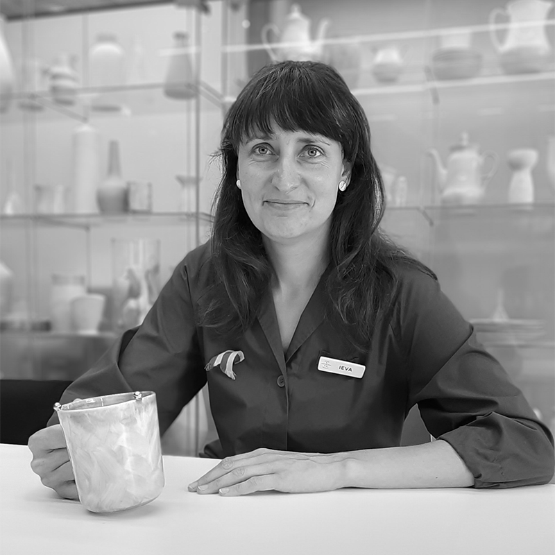 «Kā Rīgas Porcelāna muzeja izstāžu kuratore esmu vairāk saistīta ar keramikas mākslas priekšmetiem, tomēr muzeja pamatekspozīcijā ir arī neskaitāmi dizaina priekšmeti, tajā skaitā ļoti daudzas lielākas un mazākas krūzes un krūzītes. Ilgu laiku kafijai un tējai lietoju dažādas muzeja virtuvītē atrodamas krūzes, bet, kopš iegādājos Lindas Ķivules porcelāna krūzi, lietoju tikai šo vienu. No vienas puses, tam ir praktisks iemesls — krūzei ir ideāls tilpums un svars, to ir ērti satvert. No otras puses, laika gaitā esmu sapratusi, ka tam ir arī emocionāla nozīme, jo daudzo pienākumu vidū un dažādo dizaina un mākslas priekšmetu gūzmā, ar ko strādāju, šis ir tas viens, ko varu saukt par savējo.»