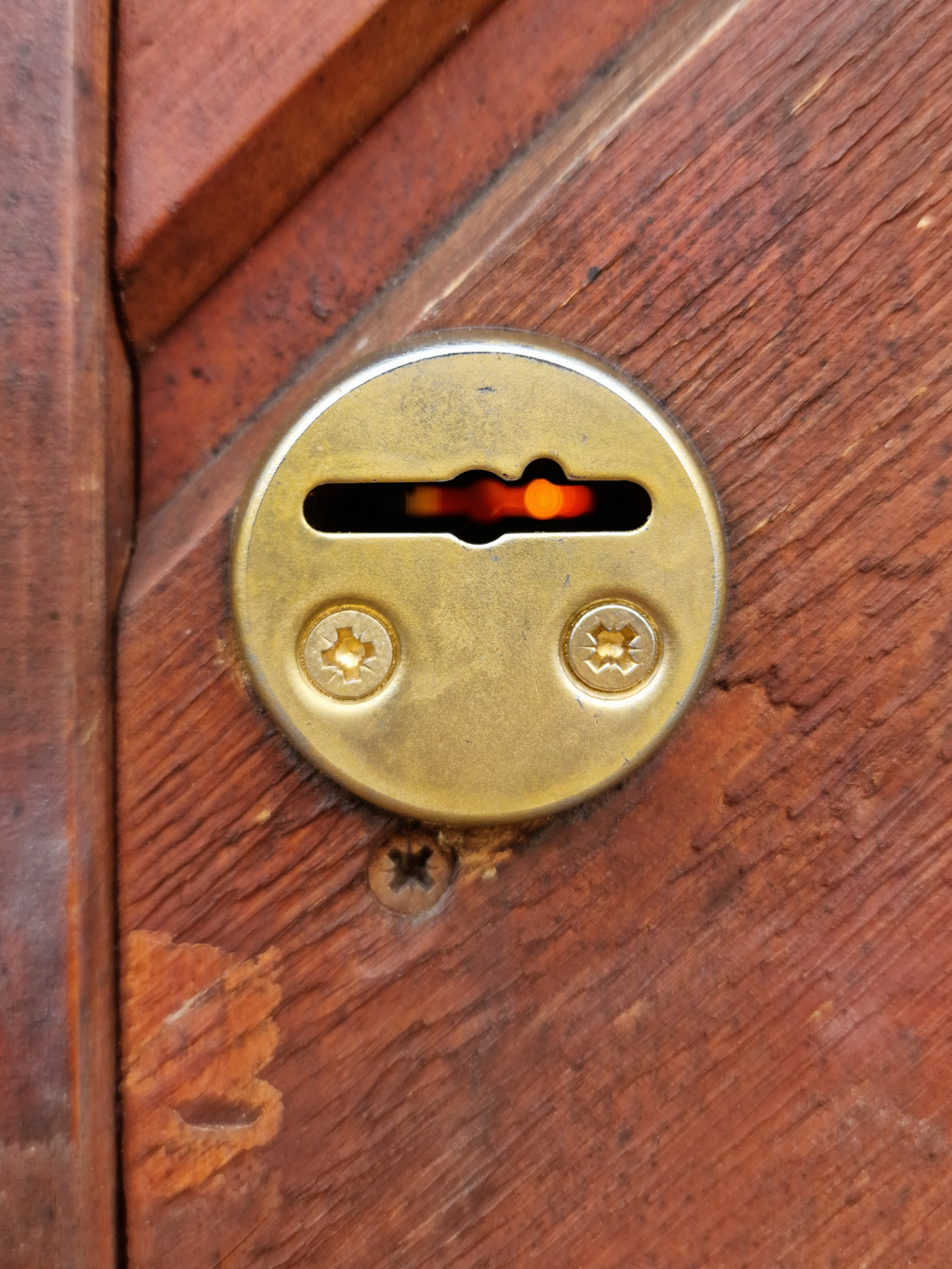 Vai jūs kādreiz esat skatījušies pa atslēgas caurumu, kas notiek blakus telpā? Daudzviet slēdzenes vairs nav tādas, pa kurām var palūrēt, bet dažas, ko «Kurzemes Atslēga» ražo tepat Aizputē, vēl ļauj ielūkoties aiz durvīm. Esot pie Linmeijera nama, nepalaidiet garām pasaulē mazāko izstāžu zāli! Pa atslēgas caurumu jebkurā diennakts laikā 10x10x10 centimetru lielā kubā varat apskatīt kāda mākslinieka darbu.