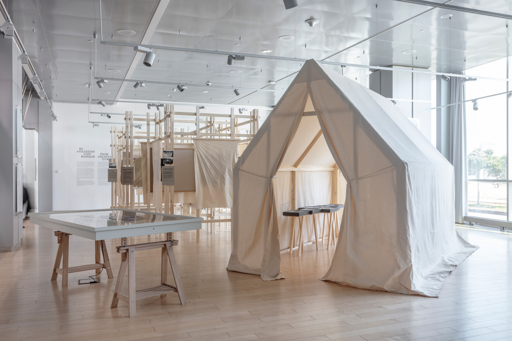 Izstādi «No Arkādijas līdz Marsam» rīko Latvijas Nacionālā bibliotēka, un tā skatāma līdz 17. novembrim. Izstādes autori: kuratore un koncepcijas autore Anda Boluža, dizainere Rūta Jumīte un vēsturnieks Mārtiņš Mintaurs. Vēsturisko plānu atlasē piedalījusies muižu parku speciāliste Ilze Māra Janelis, mūsdienu procesu apskatu sagatavojusi arhitekte Ieva Zībārte. Izstādē apskatāms arī mākslinieces Lotes Vilmas Vītiņas lielformāta gleznojums, kas veidots kā Rīgas parku ilustrācija.
