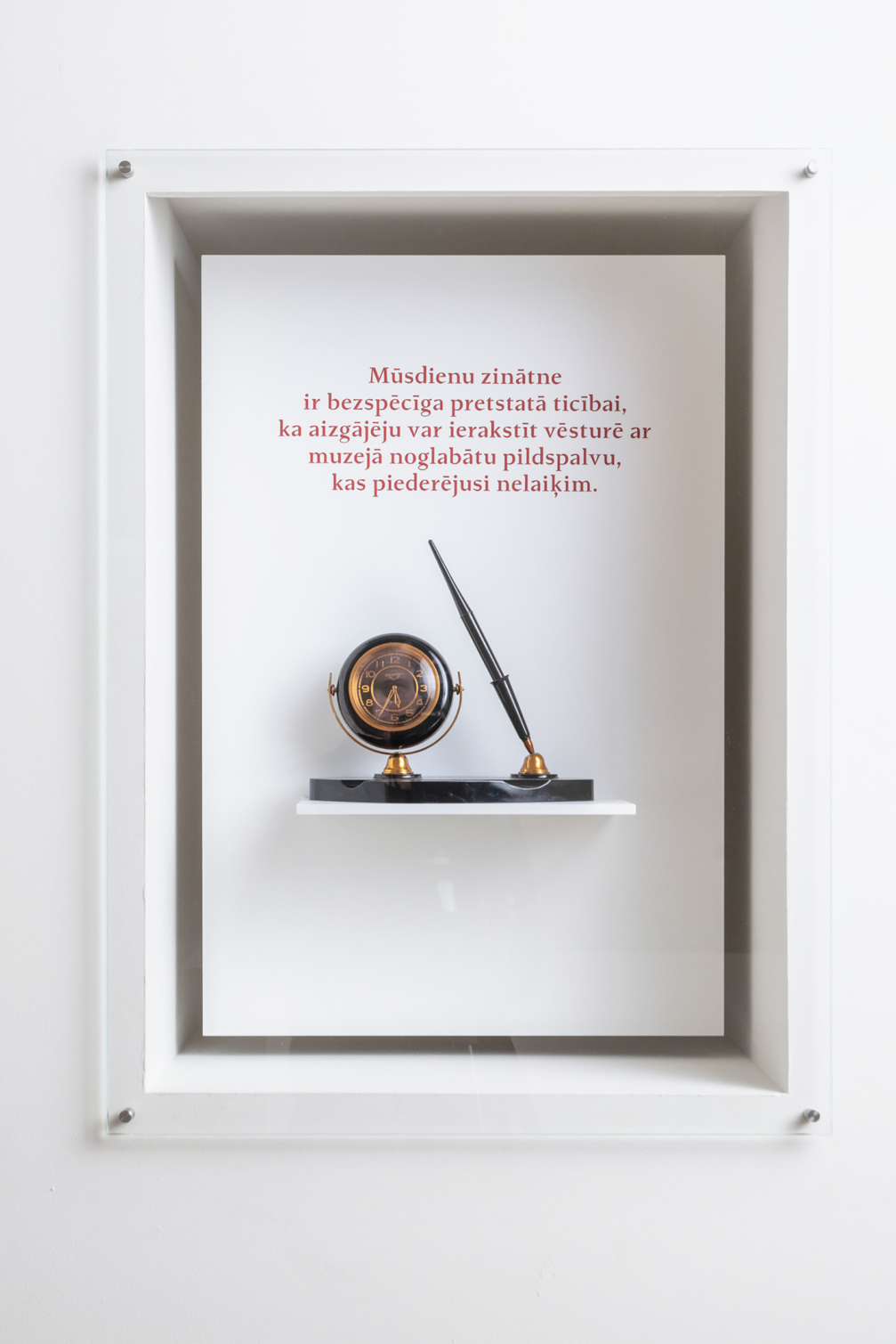 Muzeja krājums ir ne vien izstādes, bet arī ekspozīcijas dizaina sākumpunkts. Izstādes tapšanā dizaineri iesaistīti jau ļoti agrīnā stadijā un piedalījušies arī ekspozīcijā redzamo artefaktu atlasē, tādējādi veidojot vienotu veselumu starp aplūkotajām tēmām un dizaina risinājumiem. Ekspozīcijas dizaina autori — dizainers Rihards Funts, arhitektu birojs «Gaiss» un grafikas dizainers Kirils Kirasirovs — norāda, ka izstādē artefakti eksponēti līdzīgi kā muzeja krājumā, koncentrējoties pamatā uz to fizisko un materiālo raksturu, nevis to vēsturisko vai kultūras vērtību. «Vēsturiski kartotēku skapjiem bija izšķiroša nozīme muzeja krājuma organizēšanā. Tie simbolizē centienus klasificēt šķietami bezgalīgās dažādo artefaktu kolekcijas. Digitalizācija ir aizstājusi fiziskās kartotēkas, tomēr tukšās atvilktnes joprojām bieži ir redzamas krātuvju gaiteņos. Kartotēkas atvilktne kļuva par vienojošo elementu izstādes telpiskajai identitātei,» stāsta Kārlis Melzobs no arhitektu biroja «Gaiss». Atvilktnes sagaida apmeklētāju jau pie izstādes ieejas, un atsauces uz arhīva iekārtojumu caurvij visu ekspozīciju — tās manāmas gan iekārtojuma lakoniskajā un utilitārajā estētikā, gan apmeklētāju pieredzē, kas aicina katram pašam kļūt par krājuma pētnieku.