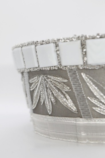 Mākslinieces darbos tadicionālās izšuvuma tehnikas papildina neparasti materiāli, piemēram, skrūves, režģi, stikla bloki un citi materiāli, kas saistās ar būvniecību. Šādi māksliniece izšuvumos ienes arhitektūras materialitāti. Viens no izstādes darbiem — «Tautumeita no mikrorajona» — ir izšūts vainags, kas vienlaikus runā par piederību Latvijai un arī savam mikrorajonam. Darbā izmantotas stikla mozaīkas flīzītes no blokmāju fasādēm, ko māksliniece pati ir salasījusi savas mājas pagalmā Mežciemā. Elīza stāsta, ka šie ir autentiski materiāli, kas dzīvojot mikrorajonā, ir bieži sastopami.