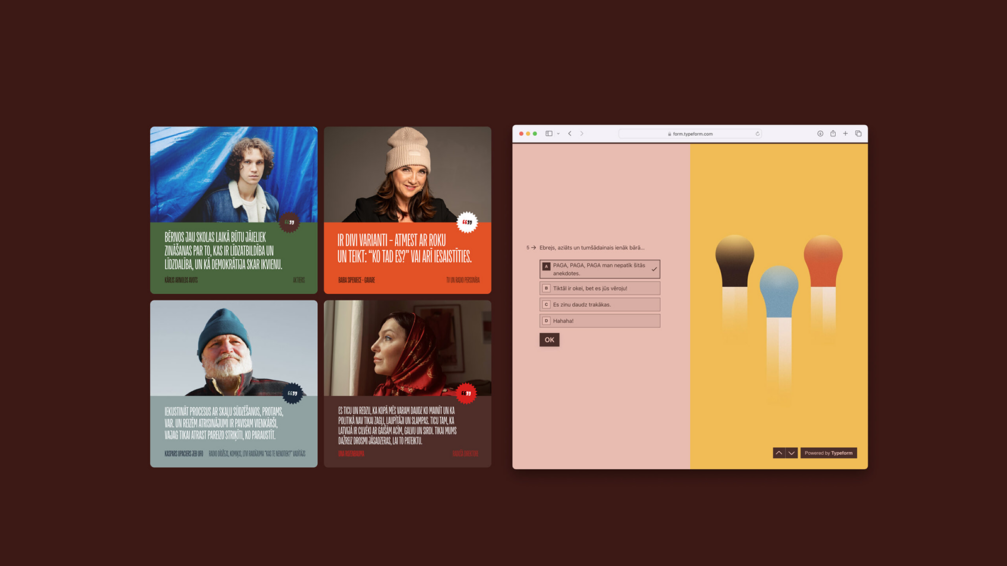 Izglītojoša sociālā kampaņa «Sūdzambībele» jeb «Demokrātijai tā arī vajag» — Alise Zariņa, Gatis Trikulis, Marta Selecka, Oskars Jansons un Alise Avota
