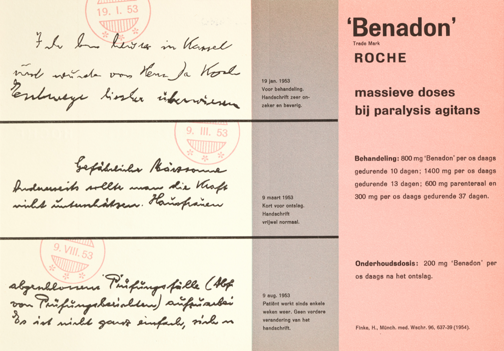 Otrs nozīmīgs izstādes aspekts ir «Roche» inovatīvā pieredze, izstrādājot uzņēmuma produktu tēlu grafiskajā dizainā. Kā ar vizuāliem līdzekļiem pastāstīt par zāļu efektivitāti? 1930.–1970. gados tapušās informatīvās lapas raksturo spēcīgas metaforas un pārsteidzoši dažādi mākslinieciskie paņēmieni, oriģināla un kvalitatīva poligrāfija, kas pārliecinoši atklāj grafiskā dizaina evolūciju 20. gadsimtā.