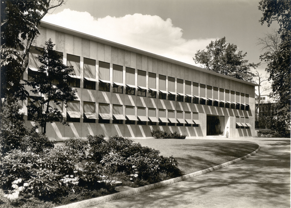 Oto Rūdolfs Zalvisbergs (Otto Rudolf Salvisberg, 1882–1940) ir pirmās funkcionālisma stilā būvētās «Roche» uzņēmuma ēkas Bāzelē (Bldg 21 – administratīvais korpuss) arhitekts. Tā tika pabeigta 1936. gadā, tas ir nedaudz vēlāk nekā Rīgas projekts, bet nenoliedzami abas celtnes vieno askētiska arhitektoniskā valoda un modernisma loģikā balstīta funkcionalitāte. Zalvisbergs atzina par nepieciešamību radīt tieši uzņēmuma prasībām pielāgotu arhitektūru. Tāpat meistara rokraksts spoži izpaudās viņa interjeros, kur pārdomātais un lietotājam draudzīgais detaļu risinājums saglabā savu aktualitāti arī no šodienas skatpunkta.