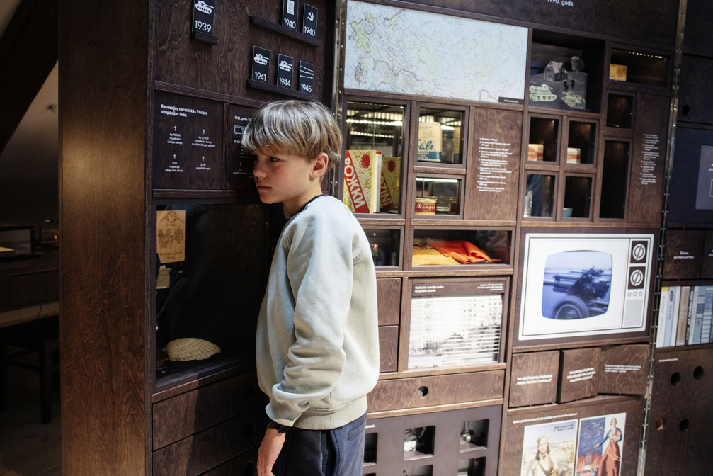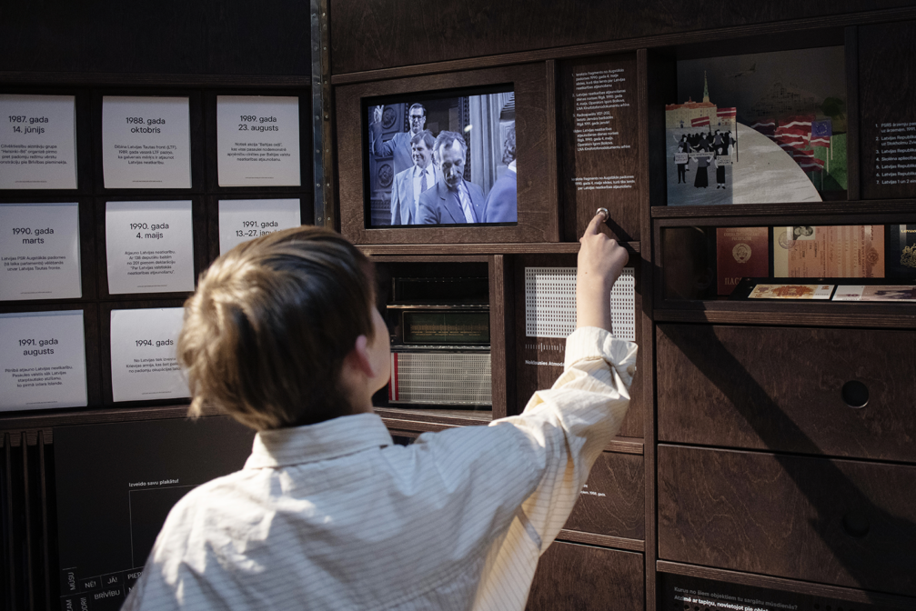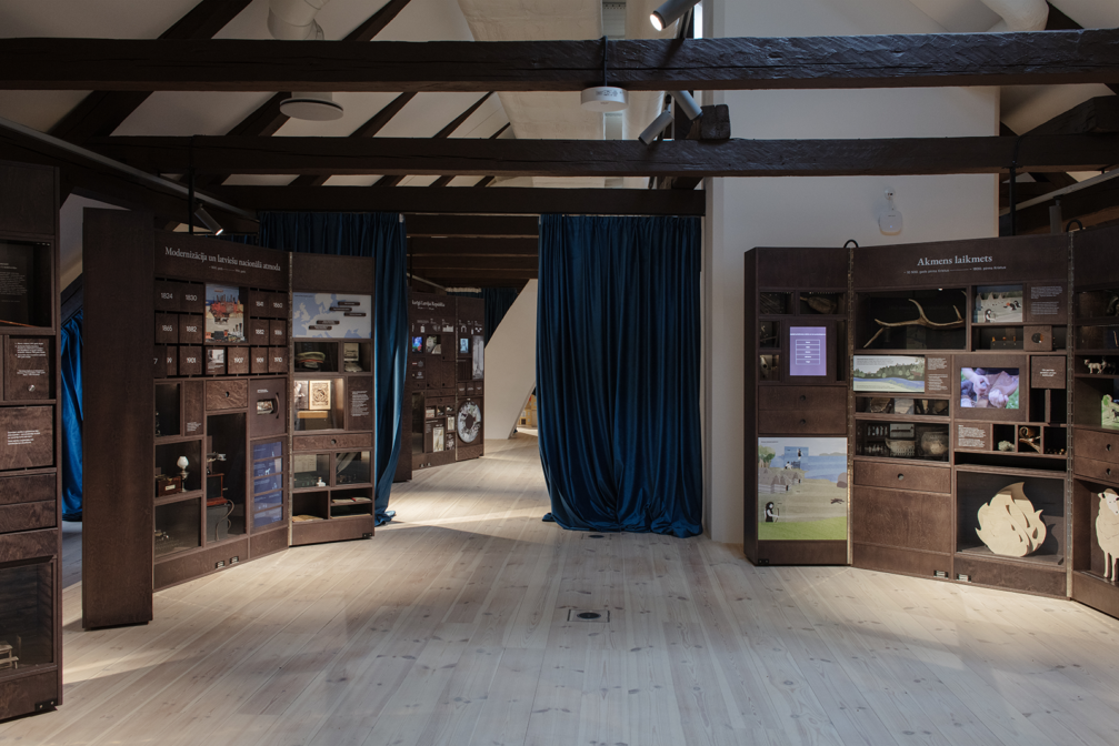 «Mūsdienās, kad ir sarežģīti konkurēt ar ekrāniem, ir svarīgi atcerēties pamatlietas un veidot veselīgu zinātkāres bāzi, savienojot dažādas pieredzes. Tādēļ arī izziņas skapji veidoti kā atsauce uz «cabinet of curiosities» jeb «brīnumu istabām», ko varētu uzskatīt par izstāžu dizaina pirmsākumiem. Katrs skapis piedāvā iespēju iepazīt kādu no vēstures posmiem — no aizvēstures līdz pat mūsdienām. Apmeklētāji var aplūkot oriģinālus priekšmetus, aptaustīt objektu kopijas un pat piemērīt Latvijas sentautu tērpus,» skaidro Una. Skapjos atrodami tādi priekšmeti kā akmens laikmeta harpūna, pirmās grāmatas latviešu valodā, fotoaparāts «Minox», trešās atmodas plakāti un citas interesantas lietas.