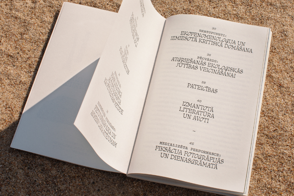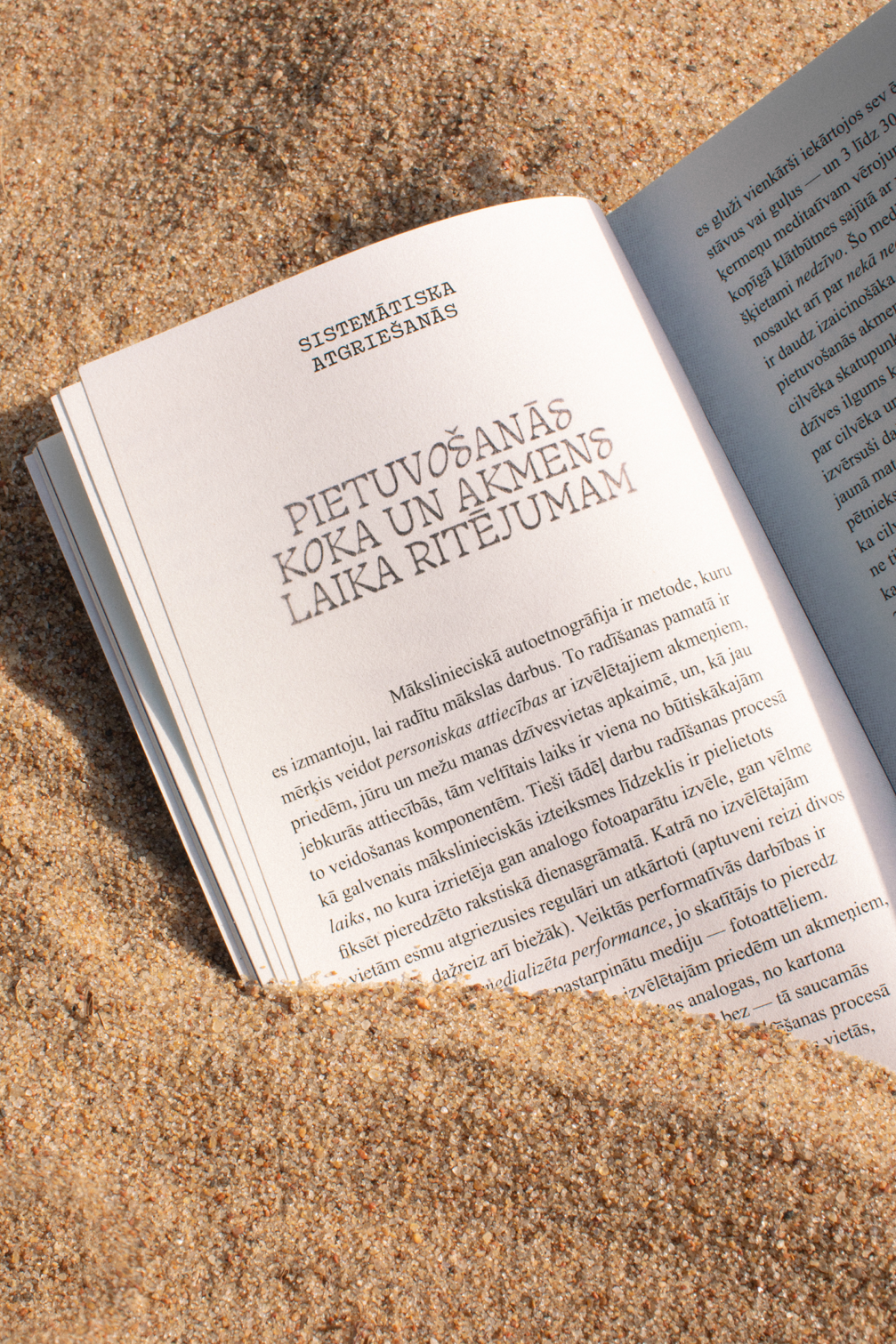 Grāmata sastāv no divām daļām: pirmajā aplūkoti pētījuma teorētiskie aspekti, savukārt otrajā — autores uzņemtās analogās fotogrāfijas un dienasgrāmatas fragmenti. Šāda struktūra atspoguļo arī pašas pētījuma metodi, kur teorētiskā analīze savijas ar māksliniecisko praksi. Lasītājs var sākt no jebkuras puses, ļaujot pētījumu iepazīt intuitīvi.