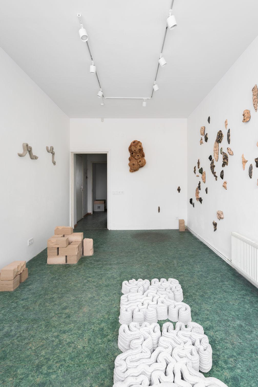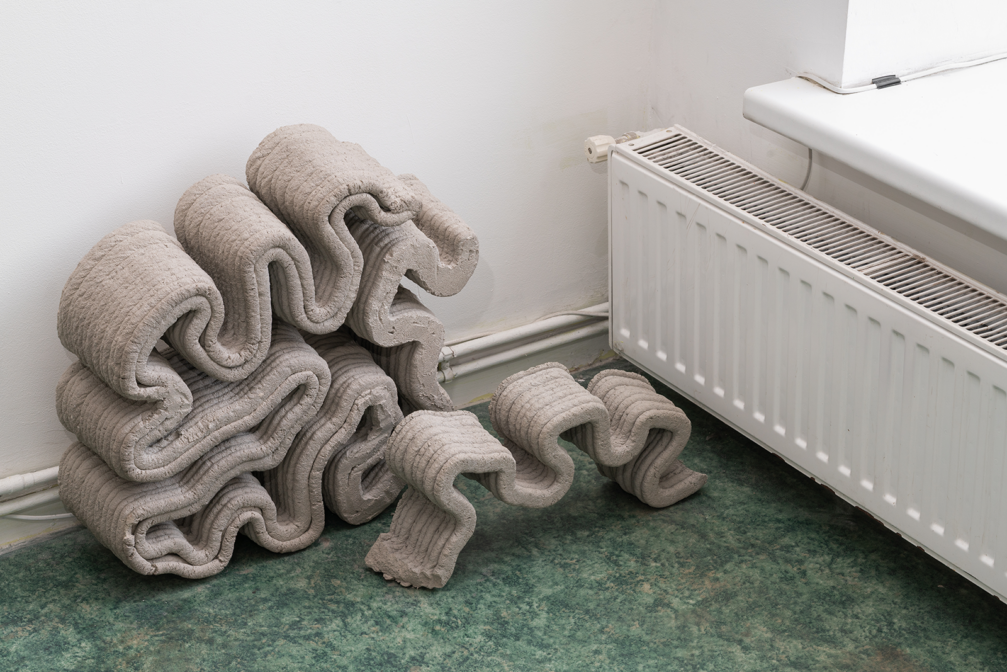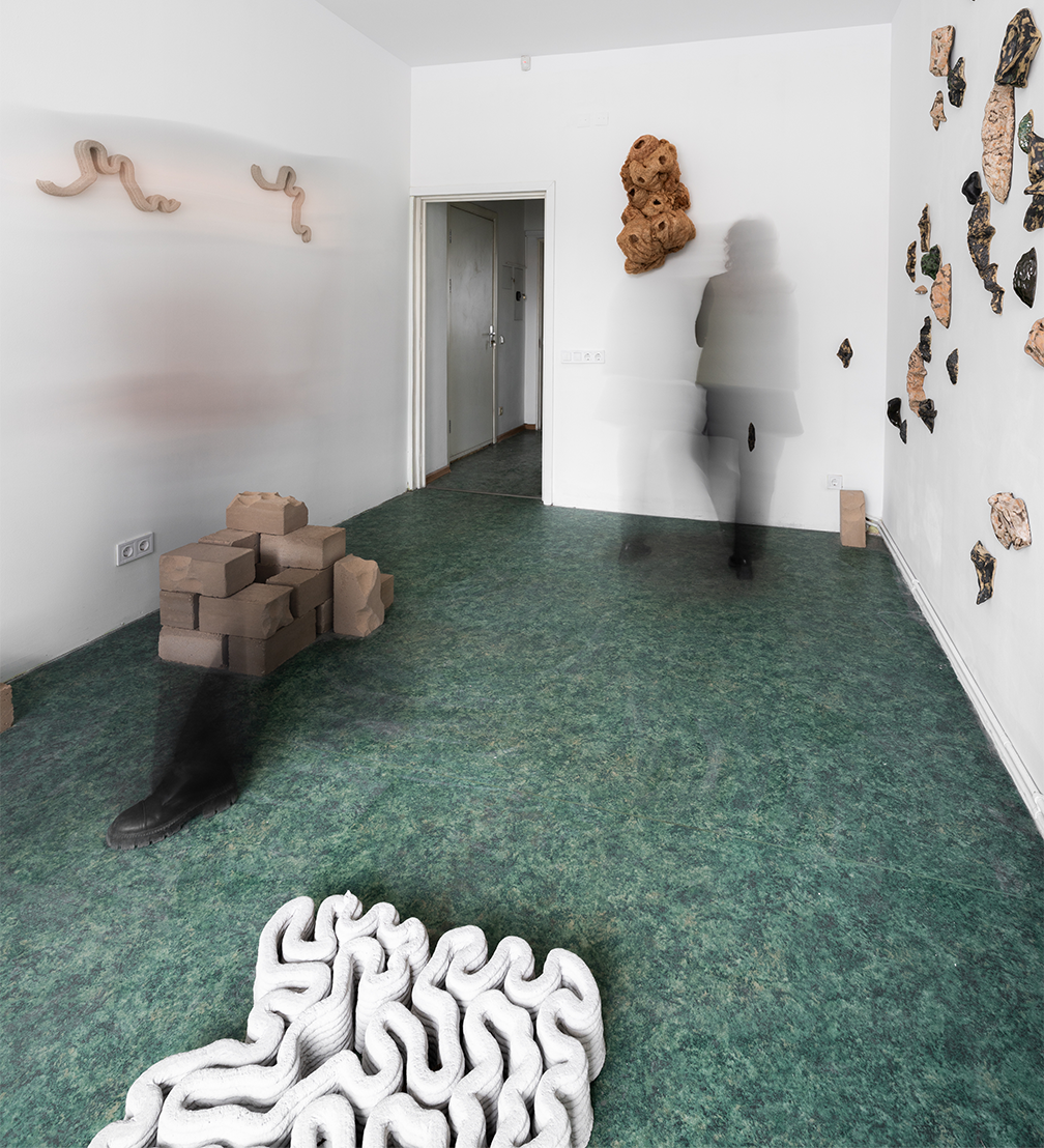«Sikspārņi pasauli uztver caur eholokāciju — viņiem tukšā telpa ir piesātināta ar skaņas viļņiem, kas palīdz identificēt attālumus līdz virsmām. Tas, ko cilvēks uztver kā plaisu, sikspārnim ir strukturēta un dzīva telpa,» stāsta Rūta un Tīna. Izpētes procesā dizaineres uzņēma foto ar dažāda veida nepilnībām Grīziņkalna apkaimes apbūvē — plaisām, spraugām un caurumiem —, lai tālāk to dobumus atveidotu akmens masā, materializējot negatīvo telpu, kas parasti mums paliek neredzama. «Katra tāda maza plaisa un iedobe mums var šķist maznozīmīga, toties kādam citam, piemēram, sikspārnim tas var nozīmēt patvērumu, drošību un mieru. Ar šo darbu aicinām pārvērtēt pilsētvides «nepilnības» un dažādās tekstūras kā ekoloģisku vērtību.» Ideju par nepilnībām kā bagātinošu pilsētvides daļu turpina arī darbs «Erodētā mājvieta» — no blietētas mālu un smilšu masas veidots ķieģeļu krāvums, kas atsaucas uz laikapstākļu un vides ietekmes noārdītu ķieģeļu sienu Matīsa ielā.