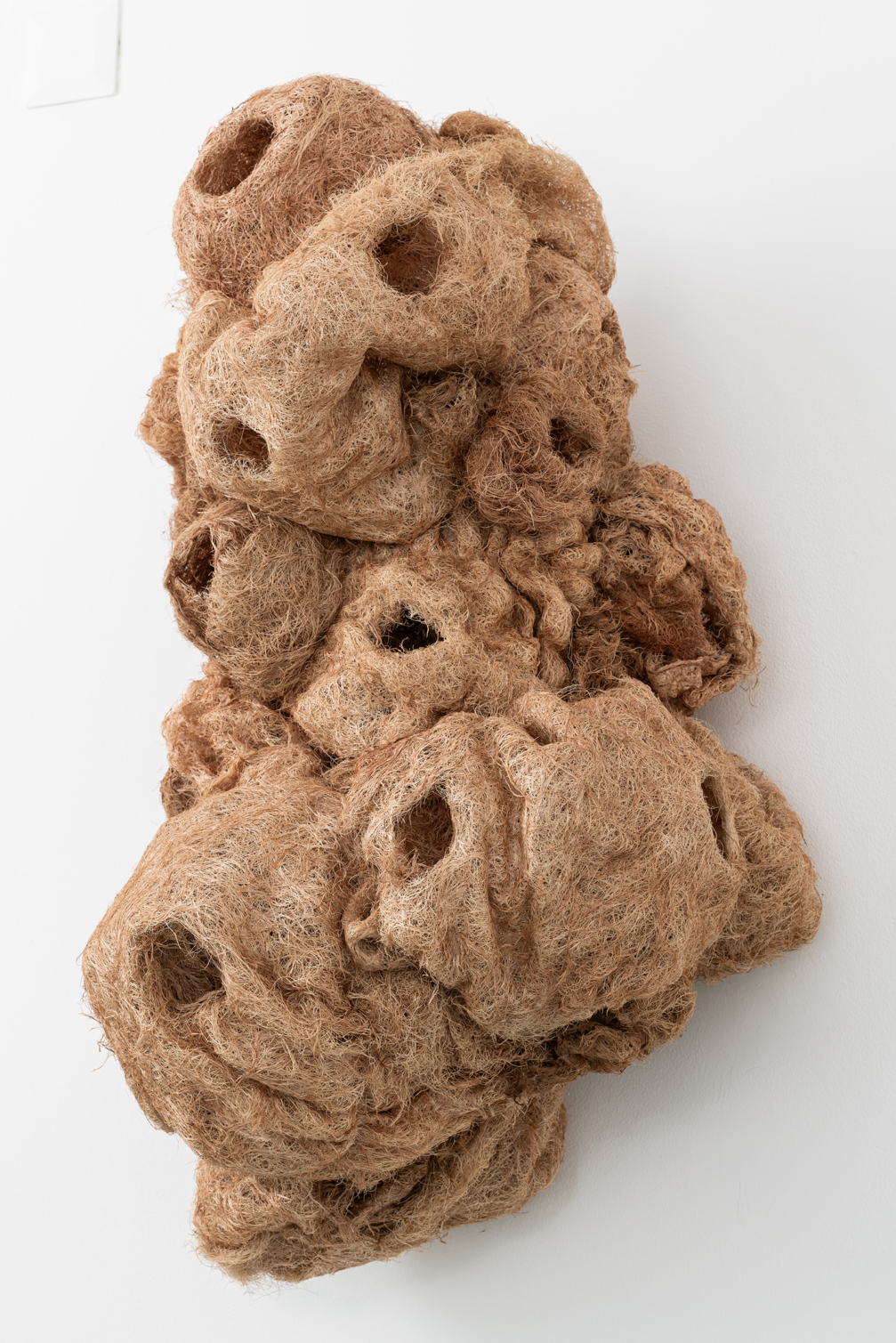 Izstādes darbos izmantoti arī citi inovatīvi materiāli. Sikspārņu māja «Sakņu pūznis» izgatavota no jaunuzņēmuma «Dzīvotne» veidotā sakņu tekstila. Dizaineres skaidro, ka objekta forma attīstīta, atsaucoties uz sikspārņu sociālo uzvedību: «Mātītes mazuļu audzināšanas periodā pulcējas kolonijās, veidojot ciešas, siltas un kolektīvas mājošanas formas. Šis objekts nav tiešs sikspārņu mājokļa atdarinājums, bet spekulācija par to, kāda varētu būt telpa, kur šāda kopā sanākšana notiek. Objekts apzināti netika veidots kā pieradināta vai estētiski skaista māja. Pūžņainā un slāņainā forma var šķist neērta cilvēka skatienam un iemieso pretmetu industrializētai ražošanai, kam raksturīgas šķautnes un taisni leņķi» skaidro dizaineres.