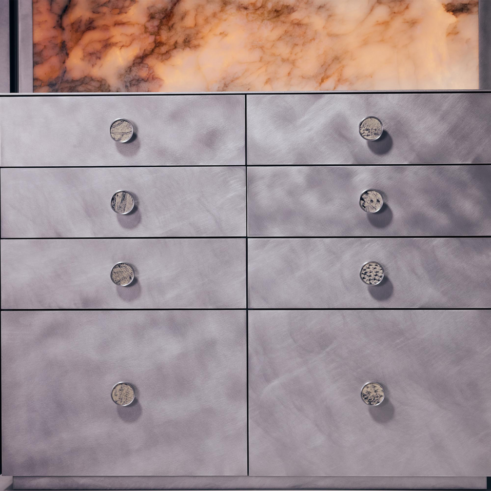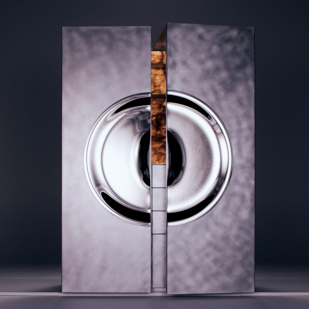 «Maison&Objet» apmeklētājus piesaistīja ne vien pats «Orion», bet arī mirdzošais stends, kas reizē sasaucas un kontrastē ar bāra skapja dizainu. «It kā nejauši lauztās, spoguļojošās fona formas ļauj gaismai brīvi spēlēties telpā, atspoguļojot vidi un skatītāja kustību. Šajā mainīgajā, dzīvīgajā fonā centrālais objekts — bāra skapis «Orion» — iemieso mieru, precizitāti un skaidri definētas līnijas. Tā monolītā forma apslēpj bagātīgu, rūpīgi izstrādātu iekšējo pasauli, kas atklājas, tikai pietuvojoties. Stends aicina uz lēnu, apzinātu skatīšanos un atklāšanu,» skaidro Agnese.
