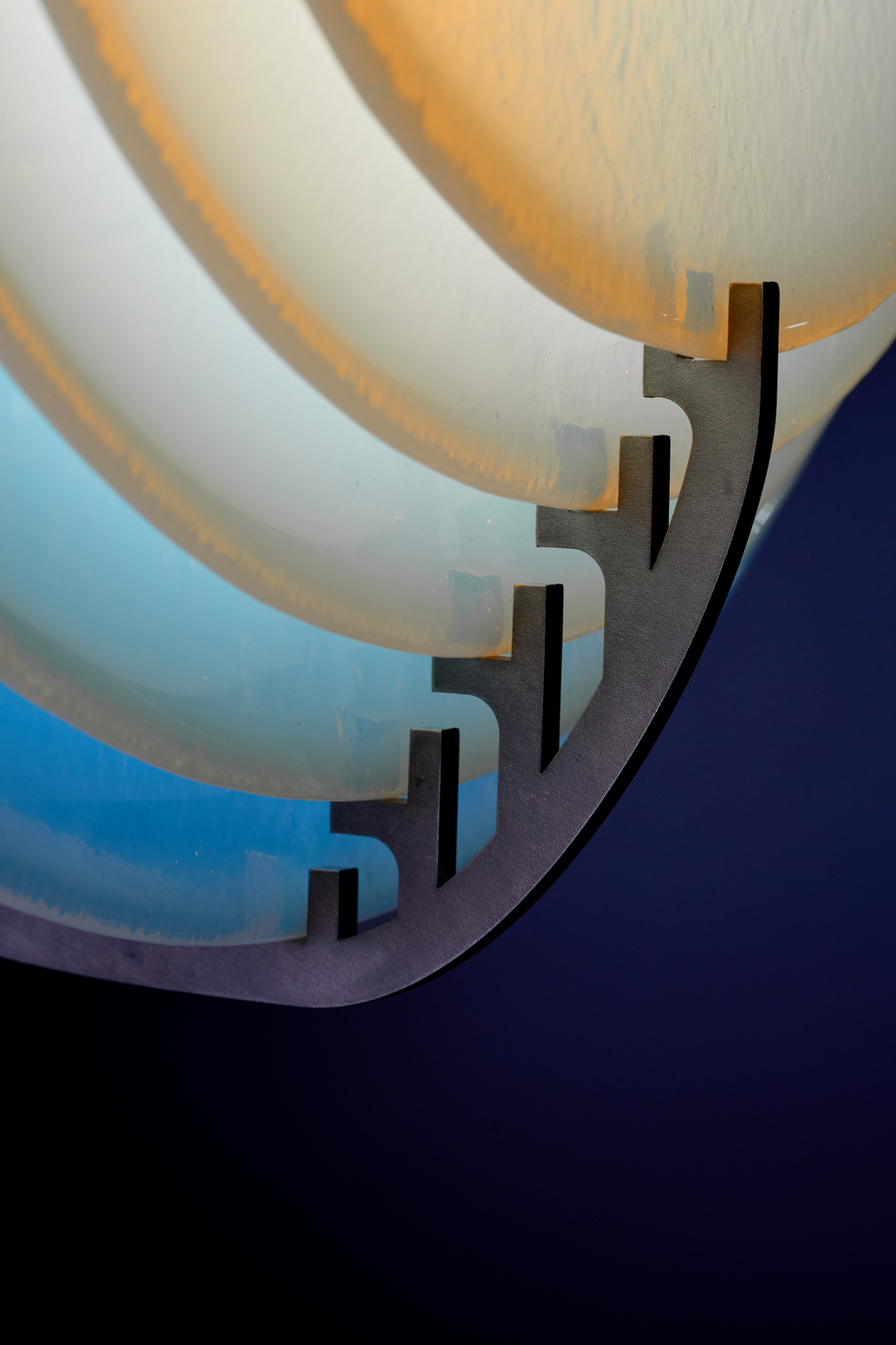 «Sky–Set» gaismeklis izgatavots no opāla stikla un atspoguļo mainīgās debess krāsas — no dienas vēsajiem zilā toņiem līdz saulrieta sārtajai nokrāsai. Toņu pāreja panākta, izmantojot Releja izkliedes efektu — fenomenu, kas ļauj mums redzēt debesis zilas. Objekta apaļo formu iedvesmojusi dendrohronoloģija — zinātnes apakšnozare, kas pēta klimata vēsturi un pārmaiņas vidē, izmantojot koku gadskārtās ietverto informāciju. Tāpat kā koki arī «Sky–Set» atspoguļo mūsu mainīgās attiecības ar Zemi. Meža ugunsgrēku un piesārņojuma rezultātā gaisu piepilda daļiņas, kas iekrāso debesis apokaliptiskos toņos, un «Sky–Set» krāšņā gaisma ir atgādinājums ne vien par atmosfēras brīnumaino skaistumu, bet arī steidzams aicinājums atjaunot saikni ar mūsu planētu un aizsargāt to.