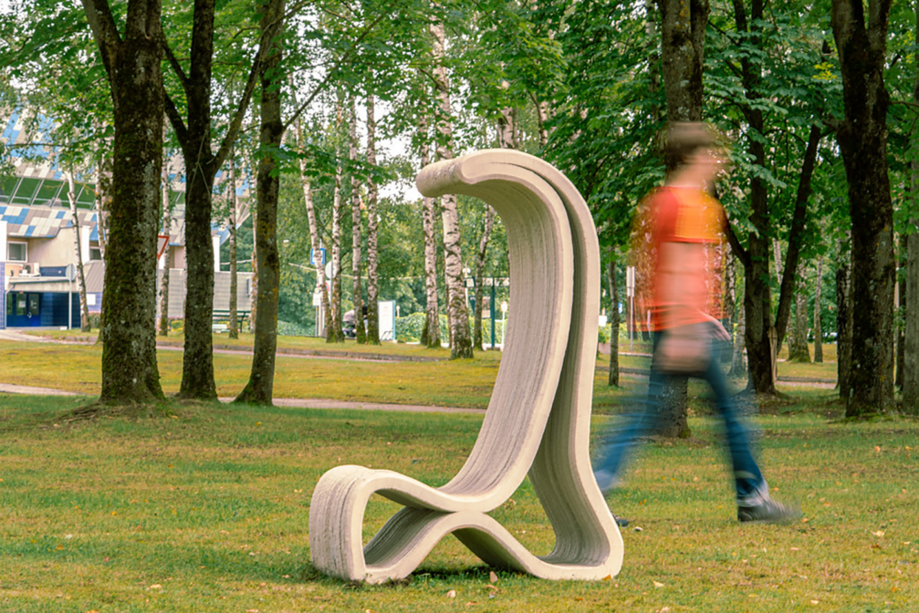 3D betona drukā veidotais «Gloriosa» krēsls ir funkcionāls pilsētvides un ārtelpas objekts ar izteiksmīgu un plūstošu formu. To iedvesmojušas liesmojošās lilijas jeb gloriozas, krēsla siluetam tverot ziedu augšupvērsto, neparasto struktūru. Plūstošā un neregulārā forma, ko ar tradicionālām ražošanas metodēm panākt būtu sarežģīti, īstenota ar 3D betona druku. Krēsls drukāts pa vairākiem slāņiem un stiprināts ar metāla stiegrām, nodrošinot ilgtspējību un drošu lietošanu publiskajā telpā. Organiskās līnijas kontrastē ar pilsētvidi, kamēr betons harmonizē ar to. Sēžot krēslā, ķermenis iegulst plūstošajā formā, veidojot saikni starp objektu un cilvēku.