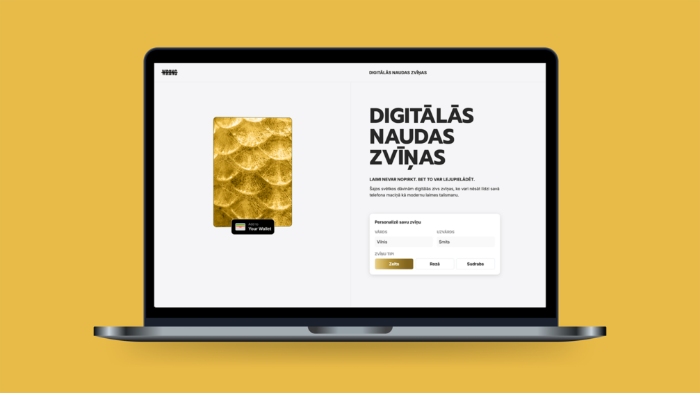 Sens ticējums vēsta, ka makā jānēsā zivs zvīņas, tad nākamajā gadā vienmēr būs nauda. Laikā, kad fiziskos makus nēsājam arvien retāk, «Wrong Digital» nolēma pārnest šo tradīciju uz mūsu virtuālajiem makiem. «Digitālās zvīņas» iespējams lejupielādēt un saglabāt savā «Apple Wallet» vai «Android Wallet» līdzās bankas kartēm, un, kā norāda autori, tās nodrošina «100% veiksmes un 0% aromāta».