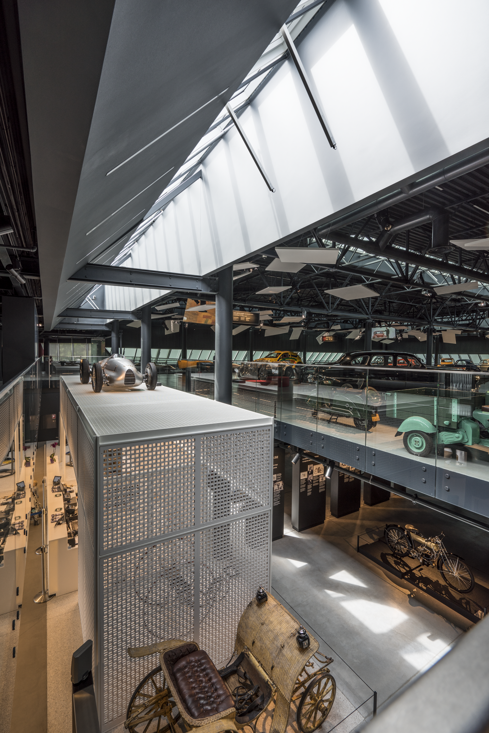 During reconstruction, the museum gained several important additions and restored vehicles, most of which are on display at the renewed exhibition. Among the newest additions are the «Benz Patent Motorwagen» replica, the Czech pride «Tatra 87» manufactured in 1949, and the result of joint effort of Austrians and Germans — cabriolet «Steyr 220 Gläser Sport Cabrio» made in 1938, «Krastin auto» — a car created by Latvian Augusts Krastins in 1903 in USA, «Cadillac V8» of 1930 or the «twin» of the car of president Kārlis Ulmanis, and other additions. The new RMM exhibition includes a unique collection of historic radios and phones. RMM now also features a hall for changing exhibitions, conference rooms, a café and a playground for kids. The reconstruction of the museum building was performed by architect’s bureau «Arhis» and «Skonto Būve» construction company. The exhibition design was created by design studio «H2E».