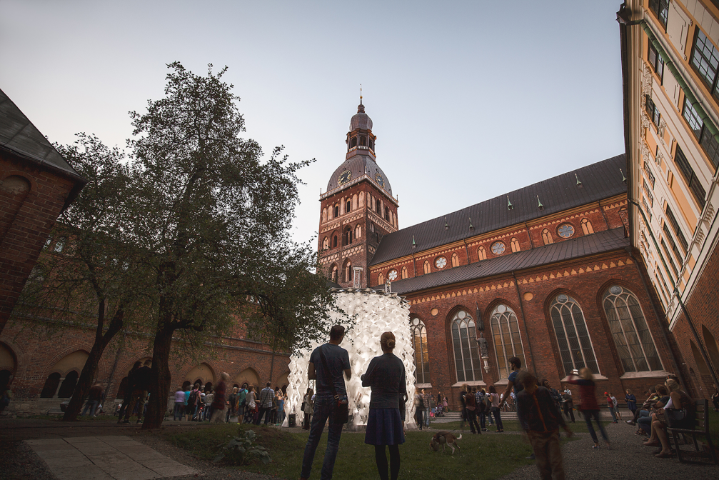 During the Contemporary Culture Forum White Night, an architecture, light and sound installation Parametric Glacier was on display at the Dome Cathedral garden in Riga. The pavilion was designed by Didzis Jaunzems, an architect who in the recent years has created a range of gorgeous set designs for various music and dance performances in Latvia.