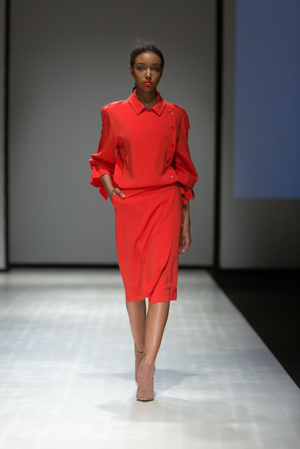Functionality is important to me — material, proportions, pockets etc. When a woman puts on my blouse or a dress and looks at herself in the mirror, it doesn’t matter to her what my source of inspiration was, or on what impulses I added frills. She is there on her own with her complexes. For her, it matters that her shoulders look good, that the muffin top is hidden, and that my product raises her self–esteem. For me it is a very important part of functionality — that my clothing raises the self–esteem of the client. That defines the character of every collection: these are clothes that are flattering to the client’s body, make him or her look slimmer and more beautiful. For me, it is important what movements my blouse or dress will introduce into a woman’s arsenal. How she will turn, smooth out the skirt, move the arms.