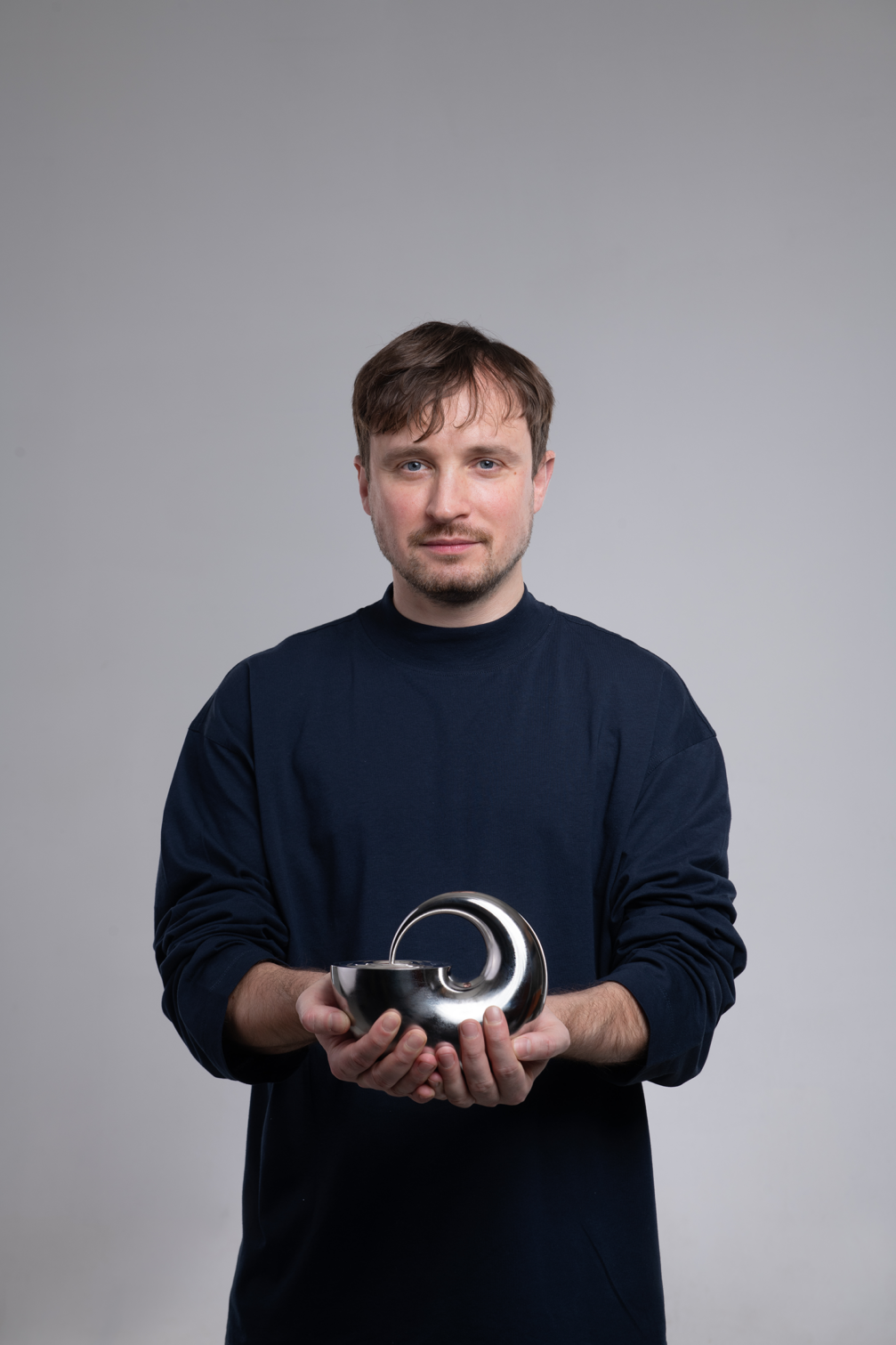 The competition organisers are particularly proud of this year’s trophy, designed by the renowned Latvian designer Germans Ermičs. The design of the award embodies the idea of continuity — «the fleeting purity of an idea — not yet created, but already perfect, balanced between presence and absence, heaviness and lightness, reality and imagination,» as Germans describes it. «Like a drop of water in calm water, an idea creates waves — some disappear, some remain, but all leave an imprint. This work reveals the quiet persistence of thought, the fluid nature of creativity, and the endless cycle of ideas. Similar to the ouroboros — an ancient symbol of renewal and continuity — it reminds us that no idea ever disappears completely, it only transforms.»