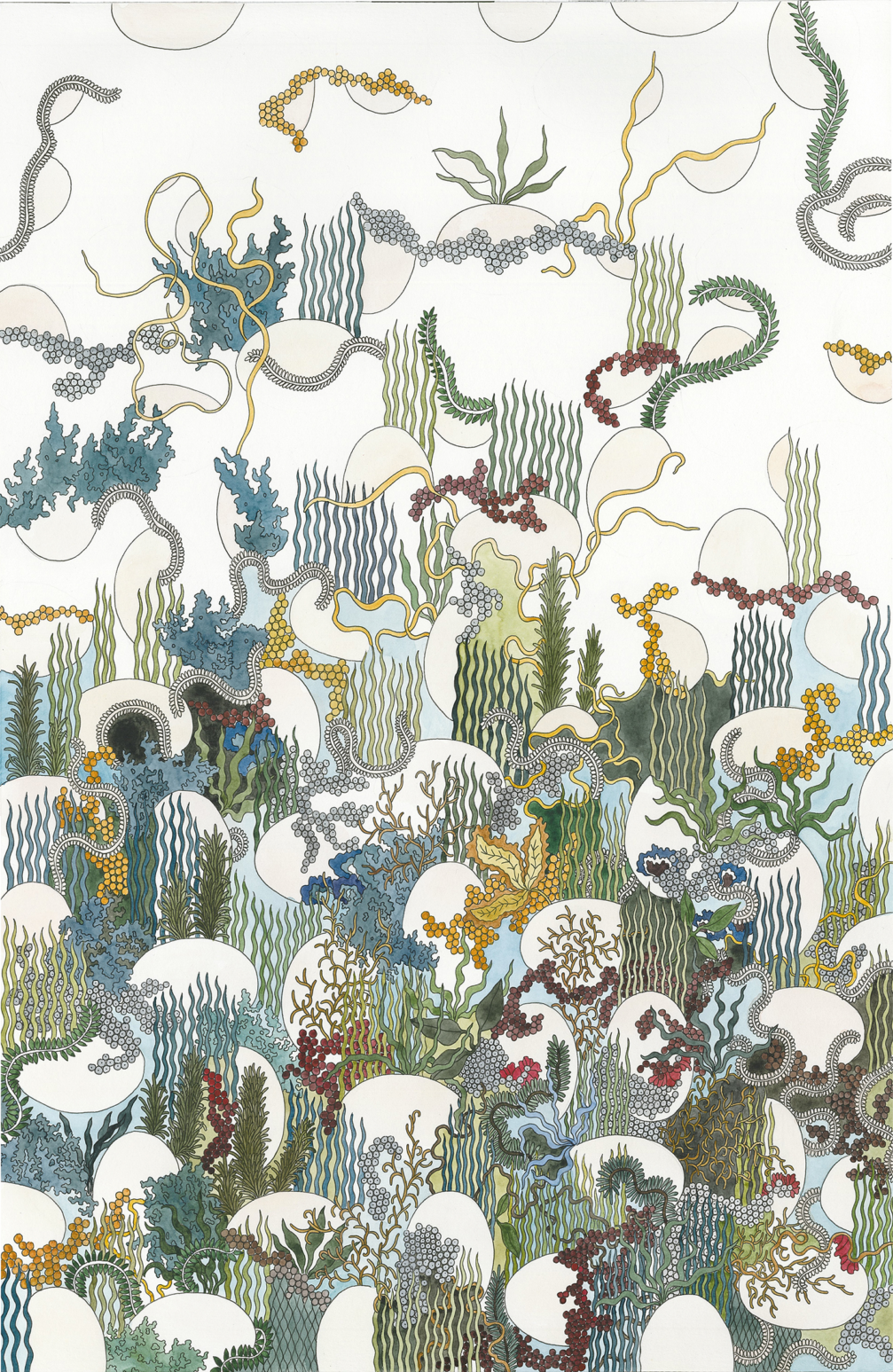 Plants are present in many of the illustrations. Linda explains that the plant motif is related to Hildegard’s concept of «viriditas», which could be translated as greenness, which gives life to both plants and people. «Every era seeks its own salvation, and perhaps Hildegarde’s idea of human responsibility in maintaining the greenness can offer us some advice,» Linda writes in the introduction to the book. Similarly, almost all of the drawings feature an egg, which Hildegard saw in her vision as a symbol of the universe.