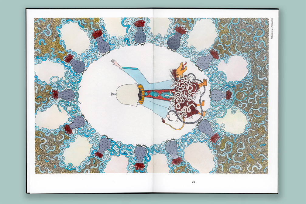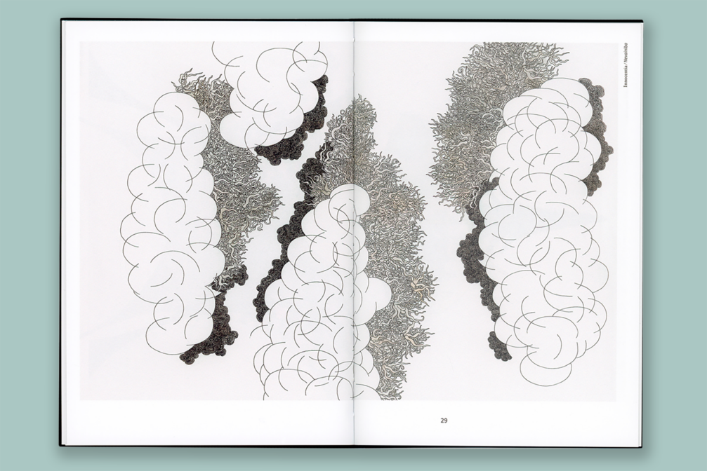 The book was designed by artist and designer Anta Pence, who created a modern and minimalist framework for Linda’s drawings. «Hildegard’s texts were written several centuries ago, but when I saw Linda’s illustrations, I immediately thought of the book as a modern version of the Ordo Virtutum, emphasising the mystical, fairy-tale atmosphere created by the artist,» says Anta. The cover of the publication uses individual graphic elements from the illustration of Patience (Patientia) to «tell a miraculous story, while preserving the joy of discovery of the magnificent images inside the book.» Two fonts, Hoefler Text and Source Sans, were used for the text layout, distinguishing between the historical Latin text and Mārtiņš Laizāns’ translation in Latvian.