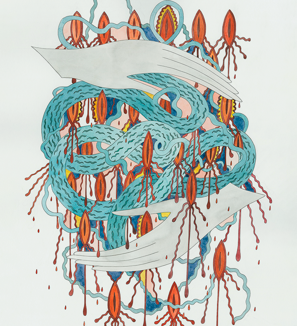 Linda first read Hildegard’s text four years ago when she was studying at the Art Academy of Latvia and learning about the first female authors. Linda saw Ordo Virtutum as a possible basis for her own creative project, such as set design or costume sketches. The idea to illustrate the play came when she began working on her master’s thesis; the artist reveals that drawing people is not her strong suit, and Hildegard’s allegorical work offered the opportunity for broader interpretations.