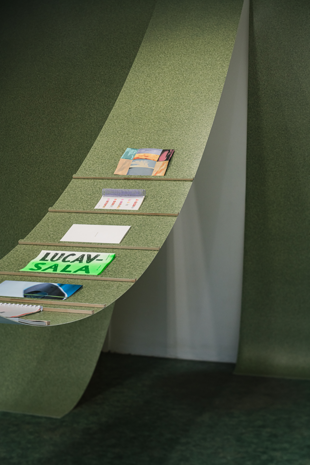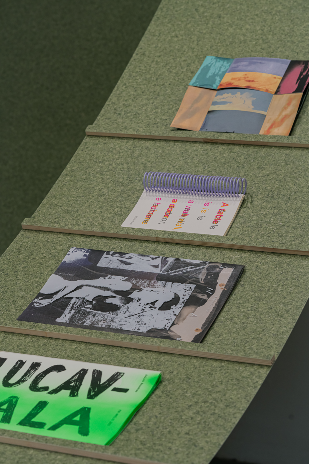 The installation created by Gaiss is «inhabited» by zines and publications of various artists, architects, and designers. The contributions include works by Evita Vasiljeva, Pauls Rietums, Agnese Bebre, Kitija Pekaine, Maike Statz, Liene Pavlovska, and Svens Neilands; books by Olivia Viitakangas and Sauli Sirviö published by Utu Press; as well as an edition of Avīzes Nosaukums created by Kristaps Šulcs and Elīza Brice. «Through the publications on display at the exhibition, artists, designers, and architects observe, bring closer, examine in context, admire, and critique the space, its materiality, the boundaries and possibilities created by the space,» says Liene Pavlovska, co-curator of the exhibition. She points out that the group exhibition is conceived as a conversation between representatives of various creative fields, revealing the diversity of artistic vision in how we view and experience space.