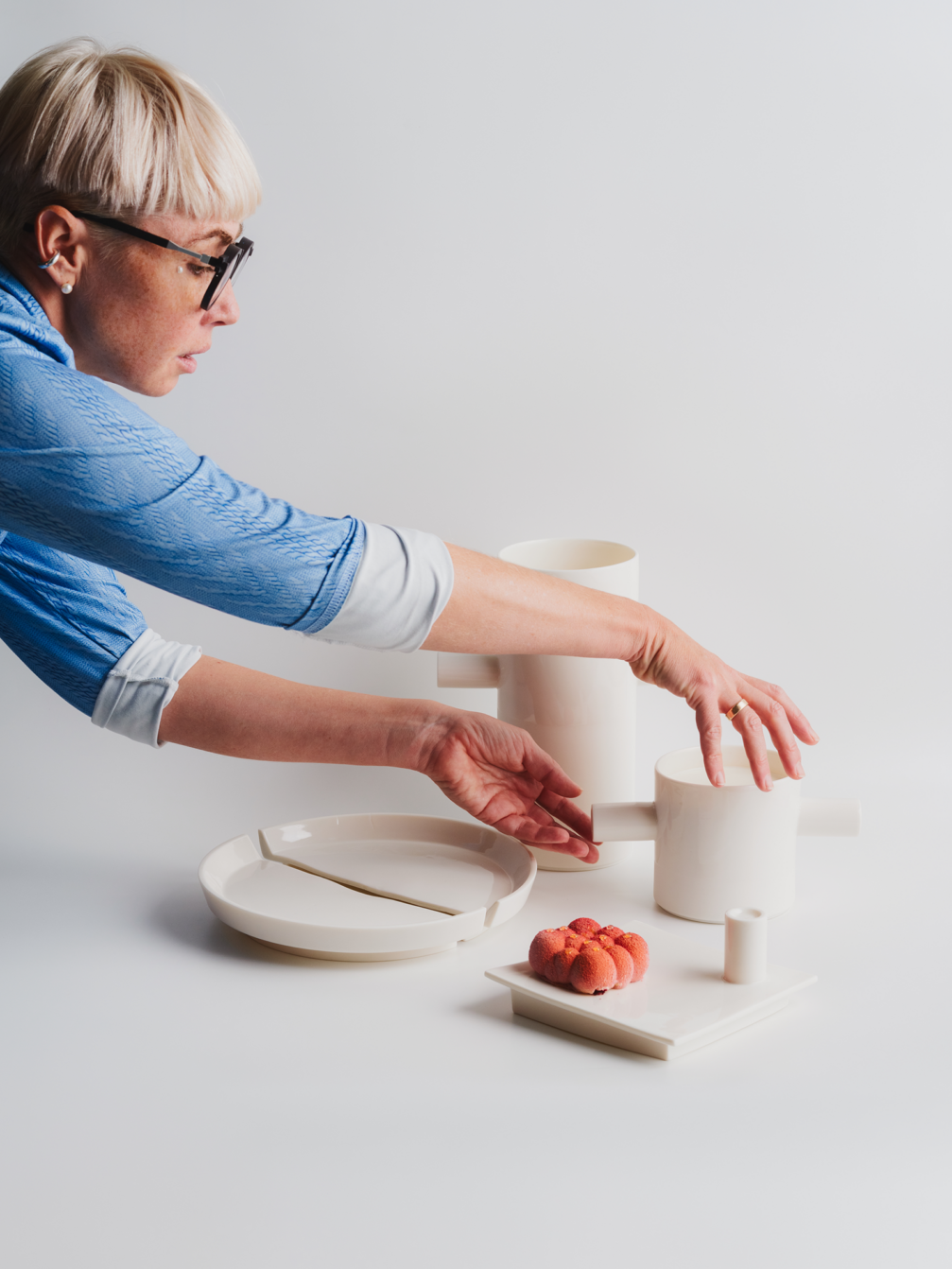 Zane Tetere–Šulce, founder and lead architect of the architecture studio Open Architecture Design (OAD), has stepped outside the realm of architecture, making her debut in product design with the porcelain tableware collection Opiece. The items in the collection embody the architectural language of OAD in practical yet sculptural objects, whose geometric, precise forms challenge the traditional art of porcelain making.