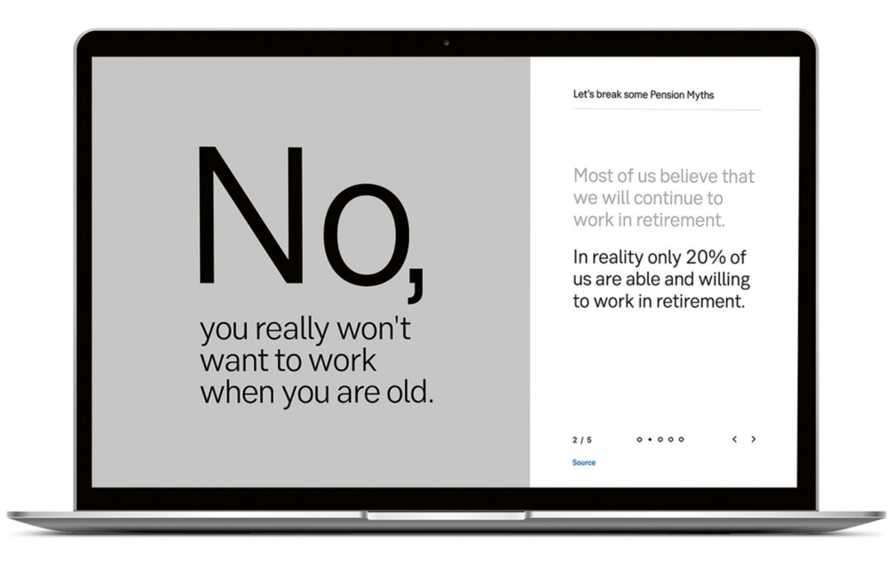 The website is one of the communication tools used in the campaign carried out by Magic. Copywriting holds the main role in communication, avoiding unnecessary visuals and decorative elements. The authors explain that the minimalist aesthetics deliberately contrast with the usual communication in the financial sector, which is dominated by smiling seniors and idyllic retirement. The direct language of the campaign encourages people to view the issue of pensions in a practical and serious manner, without illusions or overly optimistic promises.